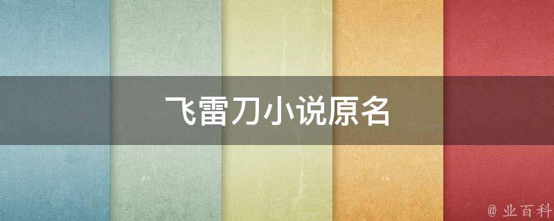 最佳答案飞雷刀小说原名就是《飞雷刀》。《飞雷刀》是连载于起点中文网的传统武侠类网络小说,作者是我住长江头,是连载于起点中文网的网络小说,主要写了二十岁初期怪才流岩闯荡江湖的故事。就在他成孤儿的十岁左右,遇到师父与江湖世界有了接触,在偶然的机会遇见天武学馆,馆主流岩的命运发生了变化出现...