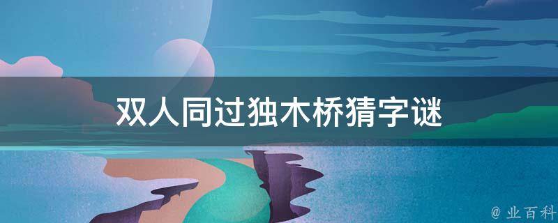 双人同过独木桥猜字谜是丛字。独木桥可以理解为一横,一横上面有两个人字就是从字。字谜主要根据汉字笔画繁复、偏旁相对独立、结构组合多变的特点,运用离合、增损、象形、会意等多种方式创造设置的,解字谜也可以从这些方面思考。
