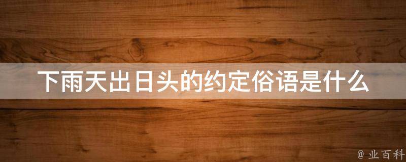 下雨天出日头的约定俗语是阴一半、阳一半。这是一句很有趣的歇后语,这句话的意思是在下雨天出现阳光,很像是太阳从云层中露出来一样,这个歇后语是比喻态度不明朗,模棱两可。歇后语诙谐、幽默并使人加深理解和记忆。
