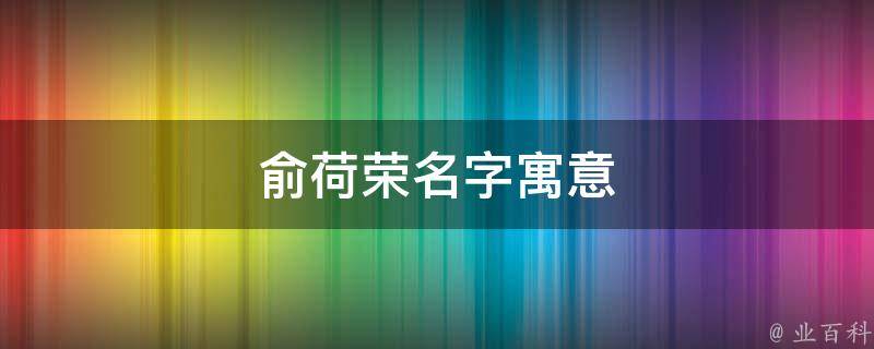 俞荷荣名字寓意是气质优雅、事业昌盛。荷,本义指荷花,在名字中多指清新淡雅,寓意气质优雅、健康美丽。荣,本义是树木名,即梧桐木,又指草木的花;引申指繁荣,进而引申为荣耀、显达等含义。