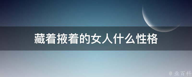 藏着掖着的女人性格沉稳、低调,个性特征比较明显,人格魅力也很明显。通常能成大事的女人,她们一定有着比较鲜明的个性特征,在有个性想法的同时,擅于观察和学习,也具有很强的亲和力,因为人格魅力很明显,所以人缘非常棒。