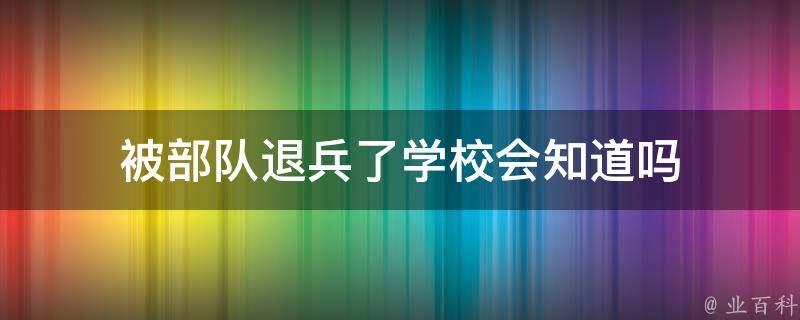 被部队退兵了学校会知道,因为所有的新兵都是从乡镇武装部门筛选之后入伍的,关于兵员的所有情况,包括个人表现,一旦出现问题,部队也会与武装部门进行沟通,所以你提及的情况乡镇武装部门都掌握的一清二楚。