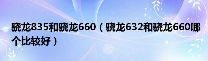关于骁龙835和骁龙660,骁龙632和骁龙660哪个比较好这个很多人还不知道,今天菲菲来为大家解答以上的问题,现在让我们一起来看看吧!