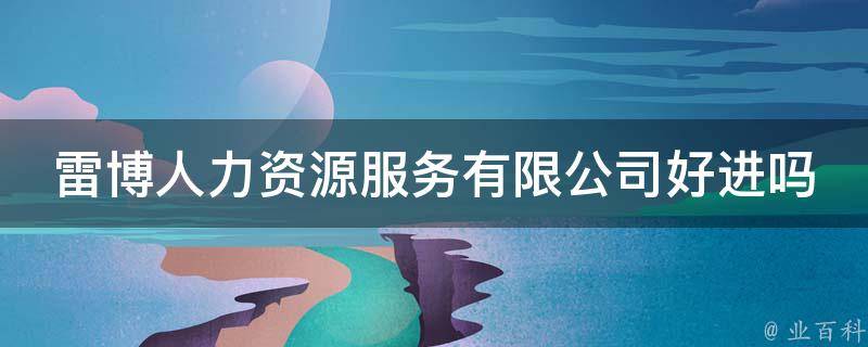 视情况而定。雷博人力资源服务有限公司具有较高的职业发展和晋升空间,是否好进需要结合该公司所招聘的岗位、学历、专业、工作经验及竞争情况等因素来分析判断。一般在招聘时可能有较高的门槛和较严格的选拔标准,需要求职者具有一定的专业能力和工作经验。
