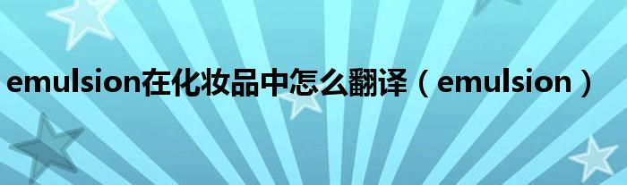 关于emulsion在化妆品中怎么翻译,emulsion这个很多人还不知道,今天菲菲来为大家解答以上的问题,现在让我们一起来看看吧!
