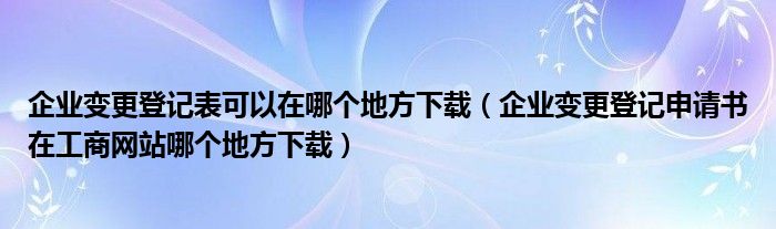 关于企业变更登记表可以在哪个地方下载,企业变更登记申请书在工商网站哪个地方下载这个很多人还不知道,今天菲菲来为大家解答以上的问题,现在让我们一起来看看吧!
