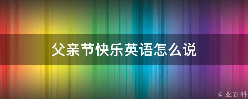 父亲节快乐英语说法是Happy Fathers Day。father,英文单词,主要用作名词、动词,作名词时意为父亲、爸爸、神父、祖先、前辈,作动词时意为发明、创立;当…的父亲。Fathers Day为父亲节,即每年六月份的第三个星期日。