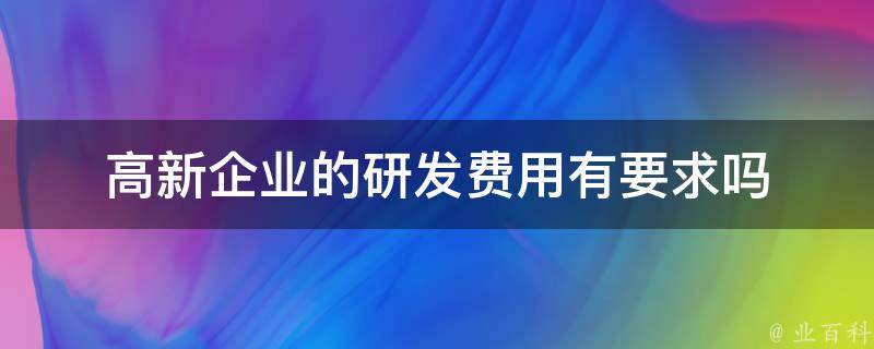 高新企业的研发费用有要求,高企对企业研发项目费用有一定的要求和限制。高企认定的研发项目费用必须是企业自主研发的费用,不能是购买技术、知识产权、专利等的费用。此外,高企还会对研发项目费用的合理性、真实性等方面进行审核和评估。