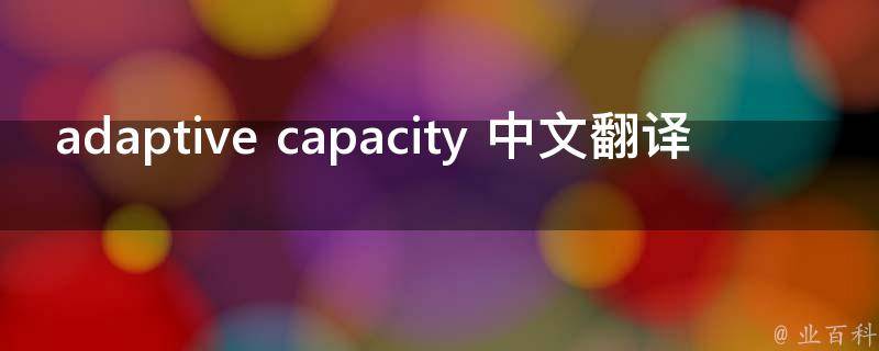 adaptive capacity中文翻译为适应能力(系统、机构、人类和其他生物适应潜在损害、利用机会或应对后果的能力)。例句:Learning is the base of adaptive capacity。