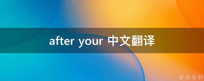 after your中文翻译为在你之后。after的意思是表示反复不断或一个接着一个。your主要用作代词,作代词时意为你的、你们的。英语属于印欧语系日耳曼语族西日耳曼语支,最早被中世纪的英国使用,并因其广阔的殖民地而成为世界使用面积最广的语言。英国人的祖先盎格鲁部落是后来迁移到大不列颠岛地区的日耳曼部落之一,称为英格兰。