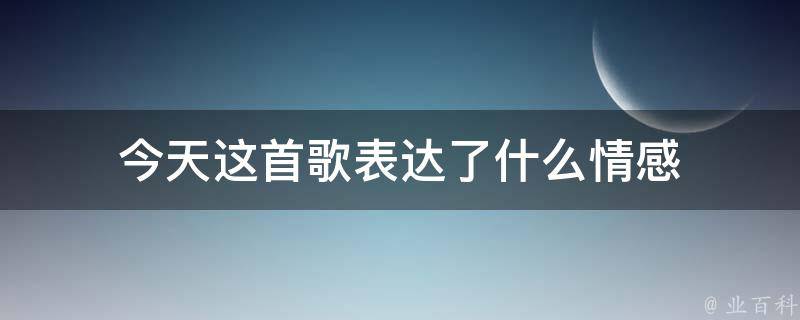 今天这首歌表达了相互鼓励,彼此珍惜的情感。《今天》这首歌描述了从失败到成功的历程。在爱人的鼓励下,以一种坚强的形象来面对人生的挫折和无奈,在克服困难的过程中,彼此都没有放弃,并且展现出一种克服困难的勇气和决心。