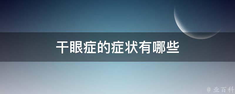 干眼症的症状包括眼睛干涩、容易疲倦、眼痒、有异物感、痛灼热感、分泌物黏稠、怕风、畏光、对外界刺激很敏感。有时眼睛太干,基本泪液不足,会刺激反射性泪液分泌,造成常常流泪。干眼病是慢性疾病,多需长期治疗。