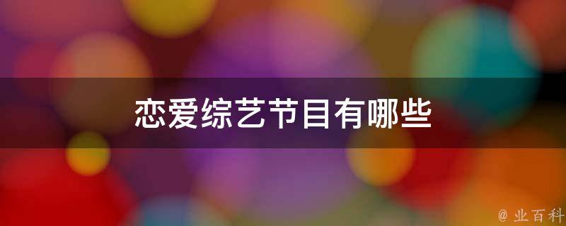 1、《换乘恋爱》:这档节目是将已经分手的情侣集中在一起,通过一次次前任任务来怀念前任,从而寻找自己真的想要的人。