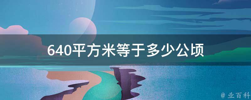 640平方米等于0.064公顷。1公顷=10000平方米,1千米=1000米,1平方分米=100平方厘米。公顷是公制地积单位,别称平方百米、平方公顷(便于记忆和换算)。一块面积一公顷的土地为10000平方米。
