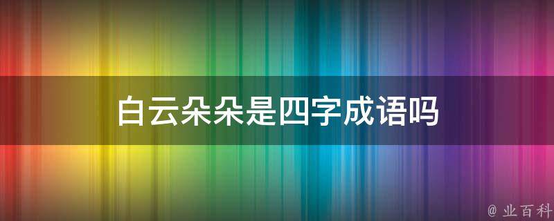 白云朵朵不是四字成语,它是个常用语,意思是形容天气很好,天空蓝蓝的,飘着朵朵白云。描写云的四字词语还有乱云纷飞、乌云翻滚、忽淡忽厚、满天阴云、云雾变幻、云雾缭绕、天高云淡、云彩飘飘等。