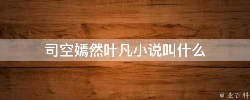 司空嫣然叶凡小说就叫《叶凡司空嫣然》,是著名作者家有绝色小姨经典小说中的主角,主要讲述了司空嫣然和叶凡之间的情感纠葛。小说可以在总裁文学网、就看阅吧、笔趣阁、吾爱阅读、藏书阁小说网等平台进行阅读。