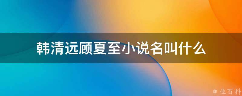 韩清远顾夏至小说名叫什么