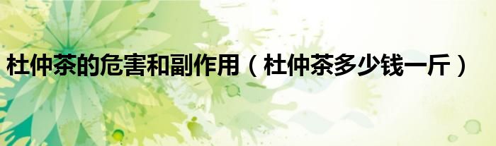 大家好,我是小科,我来为大家解答以上问题。杜仲茶的危害和副作用,杜仲茶多少钱一斤很多人还不知道,现在让我们一起来看看吧!