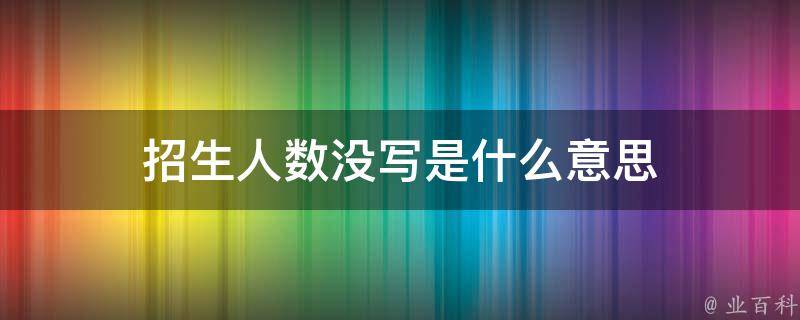 招生人数没写指的是某个学校或专业在招生计划中没有明确写出要招多少学生。有些学校或专业可能还未确定当年的具体招生人数,因此在招生计划中并未明确写出。他们可能需要等到报考人数、录取情况等因素出现后,再根据这些因素确定最终的招生人数。