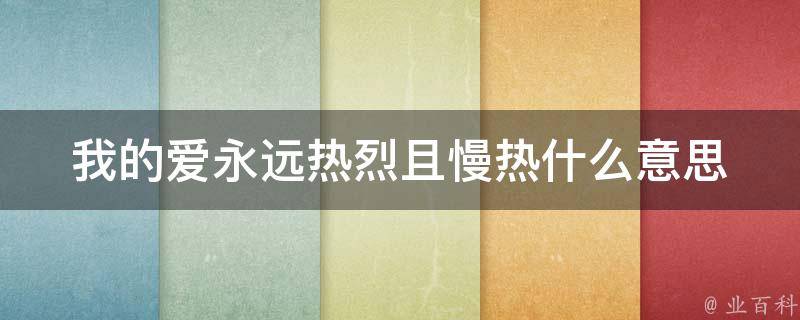 我的爱永远热烈且慢热意思是我对我喜欢的人的爱是永远热情、主动、投入、持久的。这句话表达了人们对爱情的美好期待和追求,同时,也表达了人们在爱情中的执着和坚定,希望爱情能够永远保持热恋的状态,不受外界因素影响。