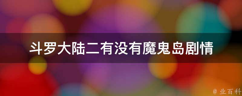 斗罗大陆二没有魔鬼岛的剧情。魔鬼岛这个地方在《斗罗大陆》第一部中是海神岛的一部分,而在第二部中并没有出现。第二部主要是在斗罗大陆和日月大陆之间的故事,与第一部相比,故事背景和环境有很大的变化。