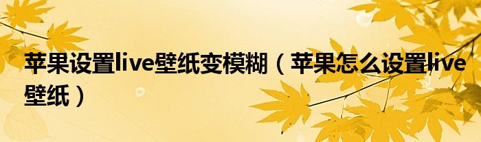 大家好,我是小科,我来为大家解答以上问题。苹果设置live壁纸变模糊,苹果怎么设置live壁纸很多人还不知道,现在让我们一起来看看吧!