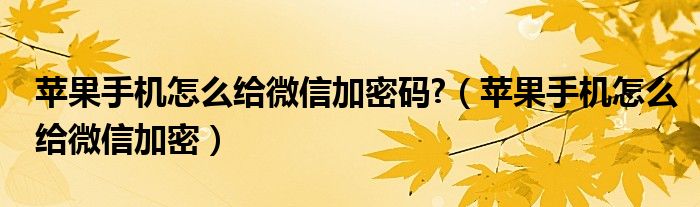 大家好,我是小科,我来为大家解答以上问题。苹果手机怎么给微信加密码?,苹果手机怎么给微信加密很多人还不知道,现在让我们一起来看看吧!