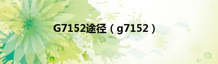 大家好,我是小科,我来为大家解答以上问题。G7152途径,g7152很多人还不知道,现在让我们一起来看看吧!