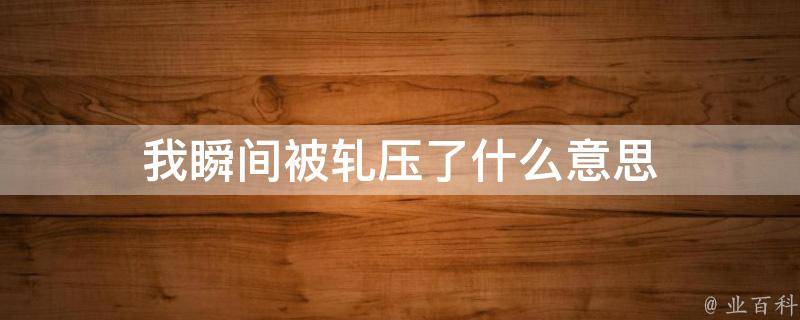 我瞬间被轧压了的意思是我根本没有反抗的机会,也没有绝对的实力进行对抗,对方的实力很强劲。轧字指圆轴或轮子等在东西上面滚压。轧压的意思是把金属坯压成一定形状,如轧钢。轧压的其他含义:挤入、拥挤;结交;核算、查对。