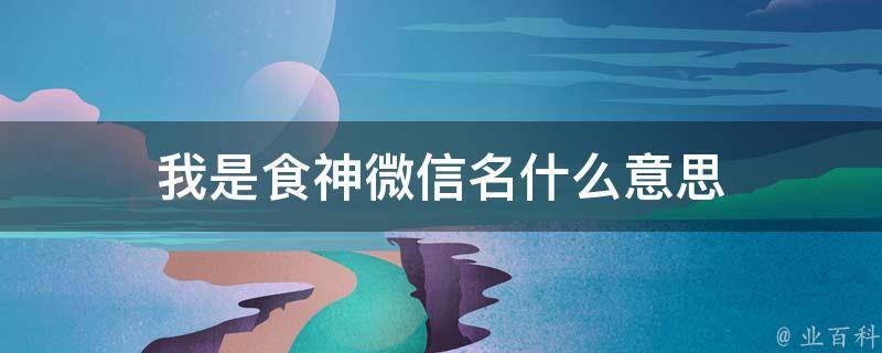 我是食神微信名的意思是表达对吃食的热爱。食神是传说中的厨艺大仙,用这个微信名可能是表达自己对于食物的热爱,或者对于烹饪的追求。此外,食神也可以表示对某种食物或者烹饪技巧的精通,用这个微信名可能是自夸自己的厨艺高超。