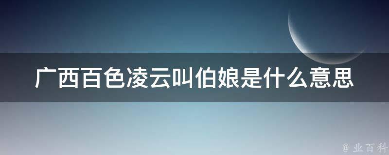 广西百色凌云叫伯娘是指伯父的妻子。具体而言,伯是兄弟里排行最大的,也指在一定的范围内居先(多指体型、做事等在前);娘在古汉语里指母亲。现代词语的伯娘在方言中一般指伯父的妻子,即大娘。