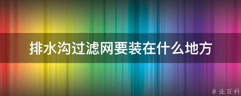 排水沟过滤网要安装在排水沟的出水口处。安装时需要先挖掘好排水沟,并确保排水沟底部平整,然后安装滤网,最后固定滤网,并连接管道。排水沟过滤网的作用是防止垃圾和杂物进入排水管,保护排水系统。