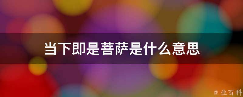 当下即是菩萨的意思是在当下这一刻,内心已经具备了菩萨所有的品质和功能。这是一种很高的境界,因为当下意味着没有任何烦恼,没有任何执着。活在当下是一种修行,是一种境界。它要求我们放下所有的烦恼和压力,把当下的事情做好,把当下的事情当成一种修行。