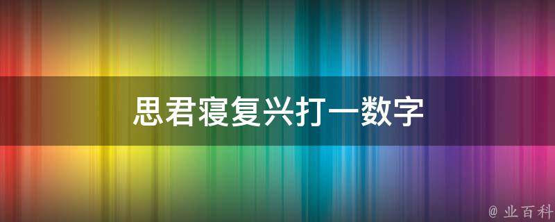 思君寝复兴打一数字是4,因为思君寝复兴中的思与4是谐音,所以,思君寝复兴打一数字是4。在数字谐音中,4代表是的、时时。另外,0代表圆满、完美、无尽;1代表唯一、你、起点;2代表爱、两人世界;3代表想念、生命、生活。
