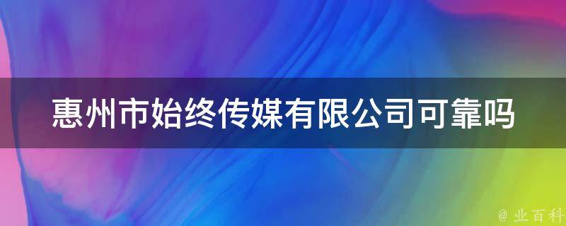 惠州市始终传媒有限公司可靠。惠州市始终传媒有限公司是一家成立于2023年的公司,法定代表人为张扬。公司经营范围包括文化艺术交流活动、会议及展览服务、礼仪服务、企业形象策划等。此外,公司还获得了网络文化经营、营业性演出、广播电视节目制作经营等许可项目。根据相关部门批准文件或许可证件,可以自主开展经营活动。