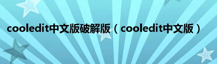 大家好,我是小科,我来为大家解答以上问题。cooledit中文版破解版,cooledit中文版很多人还不知道,现在让我们一起来看看吧!