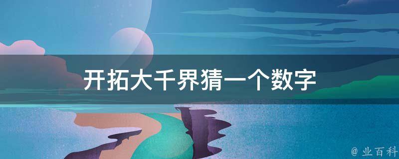 开拓大千界猜一个数字是3。因为有一个说法是三千大世界,与开拓大千界的意思相符,所以,开拓大千界猜一个数字是3。在数字谐音中,0代表圆满、完美、无尽;1代表唯一、你、起点;2代表爱、两人世界;3代表想念、生命、生活;4代表是的、时时。