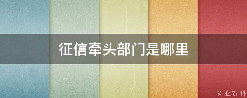 征信的牵头部门是中国人民银行征信管理局。《征信业管理条例》中规定,征信机构是指依法设立,主要经营征信业务的机构。中国人民银行主管全国的征信管理工作,中国人民银行征信管理局是组织、指导和协调征信机构开展征信业务的具体管理部门。