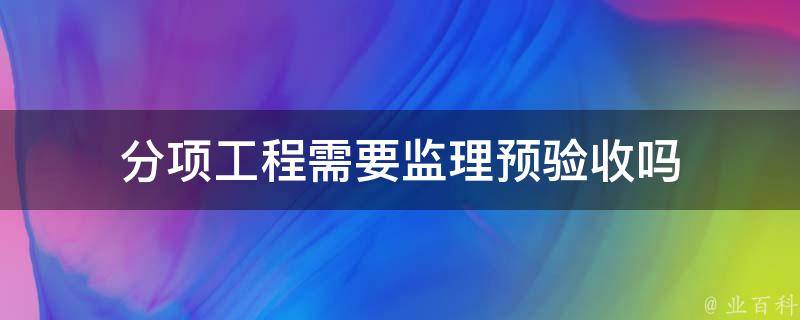 分项工程需要监理预验收。子分项工程完成后施工单位自己检查验收通过,然后填写报验单并送至监理处报验;监理在收到报验单的24小时内进行现场验收,验收合格后签署报验单;待监理签署报验单后才可进行下道工序的施工。