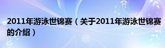 大家好,小夏来为大家解答以上的问题。2011年游泳世锦赛,关于2011年游泳世锦赛的介绍很多人还不知道,现在让我们一起来看看吧!