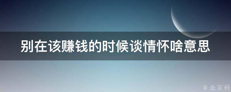 这句话的意思是不要在应该专注于赚钱的时候过于强调情怀或情感。赚钱是现实生活的基础,而情怀是一种理想化的情感。在追求梦想和实现目标的过程中,我们应该更加注重实际和现实,不要过于沉迷于情怀而忽略了赚钱的重要性。