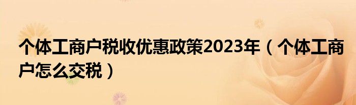大家好,我是小科,我来为大家解答以上问题。个体工商户税收优惠政策2023年,个体工商户怎么交税很多人还不知道,现在让我们一起来看看吧!