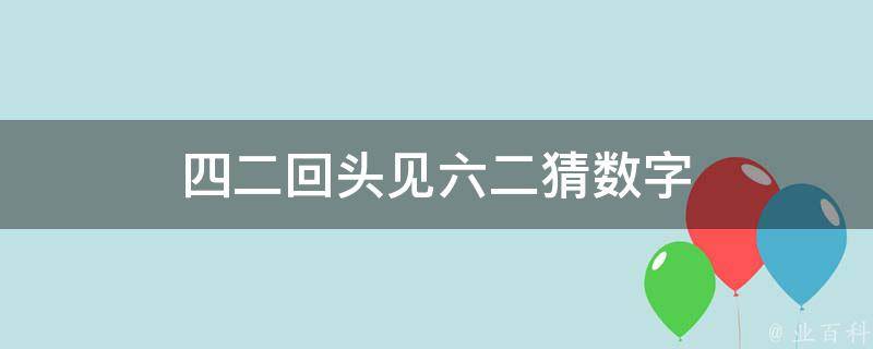 四二回头见六二猜数字是8。因为2x4=8,6+2=8,所以,四二回头见六二猜数字是8。在数字谐音中,8代表发、拜拜、不,另外,0代表圆满、完美、无尽;1代表唯一、你、起点;2代表爱、两人世界。