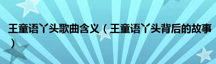 大家好,我是小科,我来为大家解答以上问题。王童语丫头歌曲含义,王童语丫头背后的故事很多人还不知道,现在让我们一起来看看吧!
