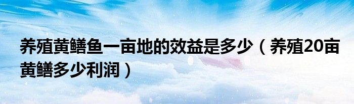 养殖黄鳝鱼一亩地的效益是多少(养殖20亩黄鳝多少利润)