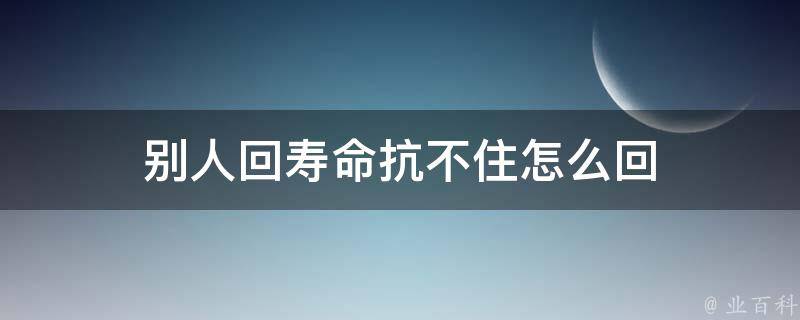 别人说寿命抗不住,可以回复如果扛不住了,就先休息一下。想要维持身体健康,延长寿命,关键要有良好的心态。心理状态良好时可以进行必要的运动。运动是提高抵抗力有效的方法。运动量充足,还可以让身体分泌出多巴胺,这种物质可以愉悦身心。