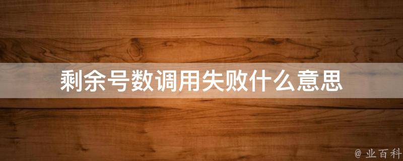 剩余号数调用失败可能是因为该时间段内剩余号码已被其他人预定或使用,或者该时段内没有剩余号码可供使用。建议选择其他时段或咨询相关客服人员以获取更多帮助。此外,也可以尝试提前预定,避免出现号码不足的情况。