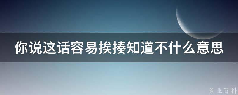 你说这话容易挨揍知道不的意思是这个人说话直来直往,说的某句话可能让对方反感。此刻应该主动的向对方坦白自己内心的心意,只有彼此双方做到互相了解对方的性格和特点,在以后的交流当中,才能主动的为对方去考虑任何事情,只有这样彼此双方做到良好的沟通,才能在生活当中给对方包容的心态。