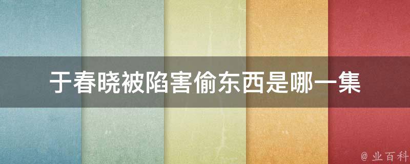 于春晓被陷害偷东西是第1集,于春晓是电视剧《小两口》里面的人物,在《小两口》第1集中,于春晓被误会偷表,受到温迪的冤枉。《小两口》由郑晓龙担任总导演,蓝志伟执导,费明、杨丝丝担纲编剧。贾乃亮、吴樾、韩彩英等人主演。该剧讲述了两种类型的婚姻为80后们打造一本完美的恋爱兵法。