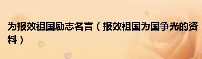大家好,我是小科,我来为大家解答以上问题。为报效祖国励志名言,报效祖国为国争光的资料很多人还不知道,现在让我们一起来看看吧!